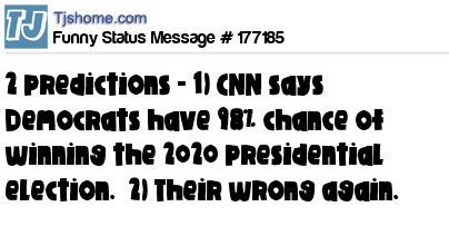 X says 2 predictions - 1) CNN says Democrats have 98% chance of winning the 2020 presidential election. 2) Their wrong again.