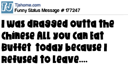 X says I was dragged outta the Chinese All you Can Eat Buffet today because I refused to leave....