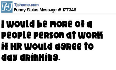 X says I would be more of a people person at work if HR would agree to day drinking.