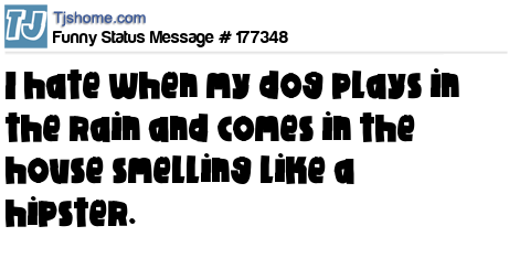 X says I hate when my dog plays in the rain and comes in the house smelling like a hipster.