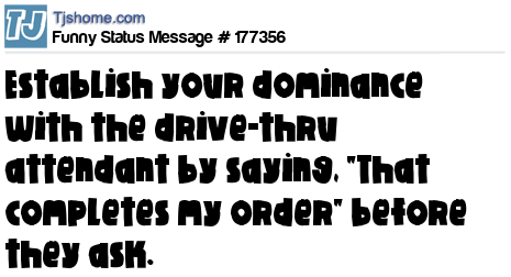 X says Establish your dominance with the drive-thru attendant by saying, "That completes my order" before they ask.