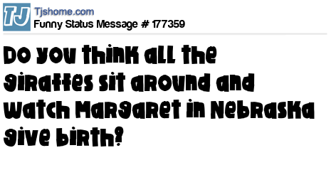 X says Do you think all the giraffes sit around and watch Margaret in Nebraska give birth?