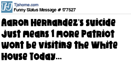 X says Aaron Hernandez's suicide just means 1 more Patriot wont be visiting the White House Today...