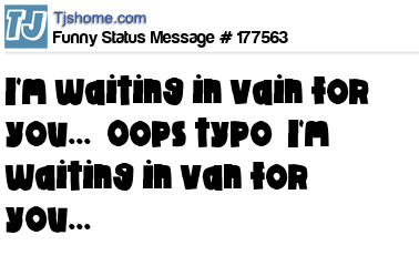 X says I'm waiting in vain for you... Oops typo I'm waiting in van for you...