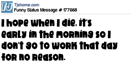 X I hope when I die, it's early in the morning so I don't go to work that day for no reason.