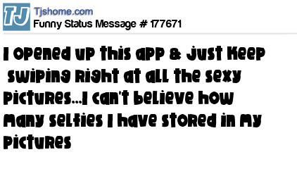 X says I opened up this app & just keep swiping right at all the sexy pictures...I can't believe how many selfies I have stored in my pictures