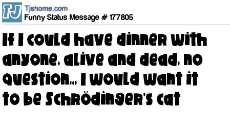X says If I could have dinner with anyone, alive and dead, no question,,, I would want it to be Schrödinger's cat