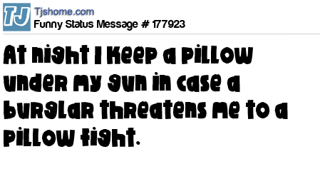 X says At night I keep a pillow under my gun in case a burglar threatens me to a pillow fight.
