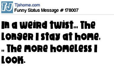 X says In a weird twist,,, The longer I stay at home, ,, The more homeless I look.