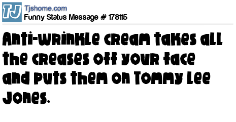 X says Anti-wrinkle cream takes all the creases off your face and puts them on Tommy Lee Jones.