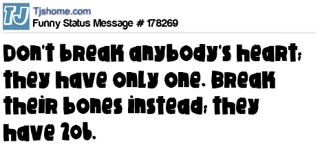 - # 29799 Don't break anyone's heart , they have only one.... Break their bones , they have 206 of them