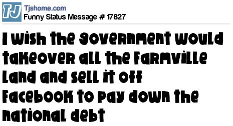 X I wish the government would takeover all the Farmville land and sell it off Facebook to pay down the national debt
