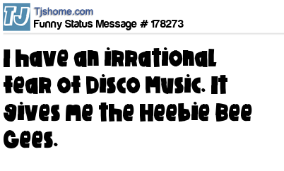 X says I have an irrational fear of Disco Music. It gives me the Heebie Bee Gees.