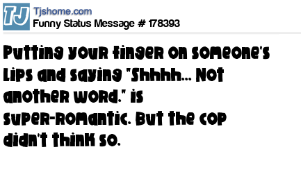- # 136261 Putting your finger against someone's lips and saying "Shhhh.... Not another word." is super romantic. But the cop didn't think so.