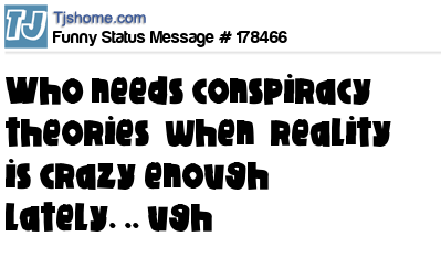 X says Who needs conspiracy theories when reality is crazy enough lately. .. ugh