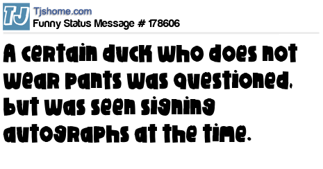 X says A certain duck who does not wear pants was questioned, but was seen signing autographs at the time.