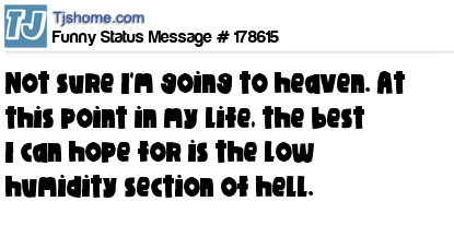 X Not sure I'm going to heaven. At this point in my life, the best I can hope for is the low humidity section of hell.