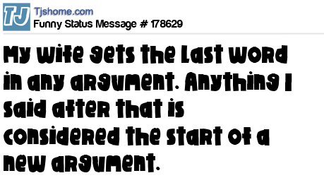 X says My wife gets the last word in any argument. Anything I said after that is considered the start of a new argument.