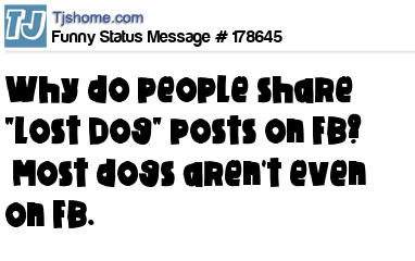 X Why do people share "Lost Dog" posts on FB? Most dogs aren't even on FB.