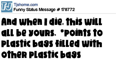 - # 170155 And when I die, this will all be yours...... *points to plastic bags filled with other plastic bags