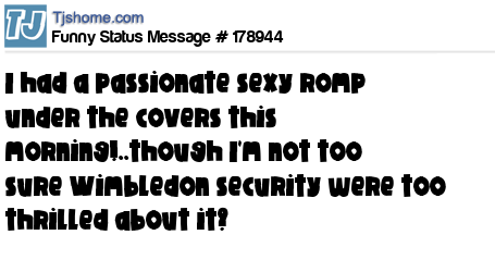 X is I had a passionate sexy romp under the covers this morning!..though I'm not too sure Wimbledon security were too thrilled about it?