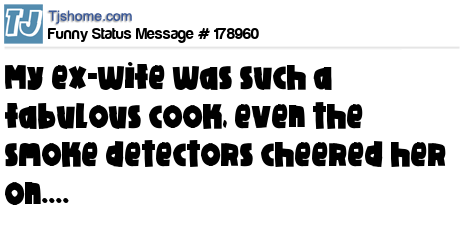 X says My ex-wife was such a fabulous cook, even the smoke detectors cheered her on....