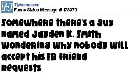 X  Somewhere there's a guy named Jayden K. Smith wondering why nobody will accept his FB friend requests