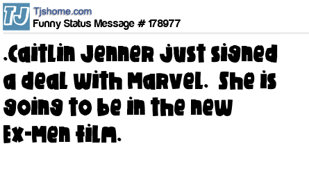 X says .Caitlin Jenner just signed a deal with Marvel.  She is going to be in the new Ex-Men film.