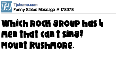 X says Which rock group has 4 men that can’t sing? Mount Rushmore.