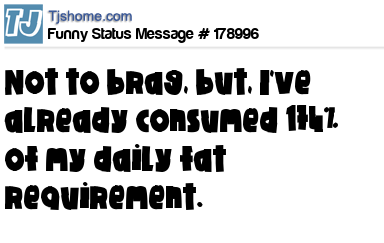 X says Not to brag, but, I've already consumed 174% of my daily fat requirement.