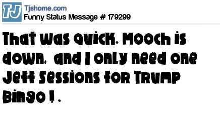 X That was quick. Mooch is down, and I only need one Jeff Sessions for Trump Bingo ! .