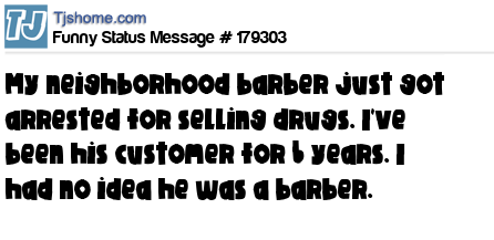 - # 169459 My neighborhood barber just got arrested for selling drugs... I've been his customer for 6 years. I had no idea he was a barber.