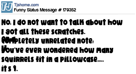 - # 134912 No, I don’t want to say where I got these scratches. On an unrelated note, if you wondered how many squirrels fit in a pillowcase,,, it’s 9.
