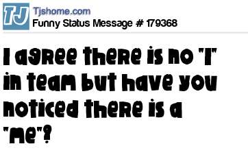X says I agree there is no "I" in team but have you noticed there is a "me"?