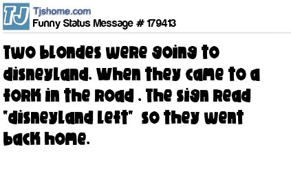 X is Two blondes were going to disneyland. When they came to a fork in the road . The sign read "disneyland left" so they went back home.