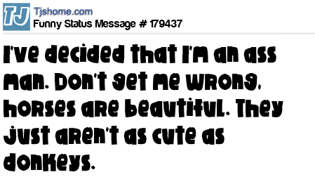 - # 134897 I've decided that I'm an ass man. Don't get me wrong, horses are beautiful. They just dont have the majestic aura of the donkey.