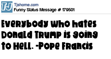X says Everybody who hates Donald Trump is going to Hell. -Pope Francis