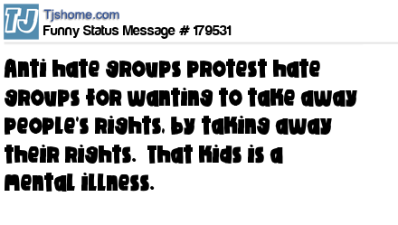 - # 179533 You can not take people's right away who want to take other people rights. You become as bad as them. We all have rights, even stupid people like the hate and anti hate group people.