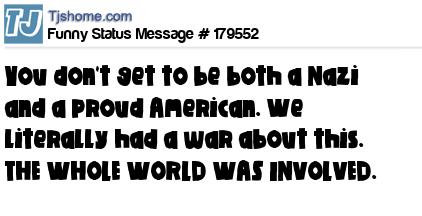 X is You don't get to be both a Nazi and a proud American. We literally had a war about this. THE WHOLE WORLD WAS INVOLVED.