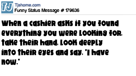 X When a cashier asks if you found everything you were looking for, take their hand, look deeply into their eyes and say, "I have now."