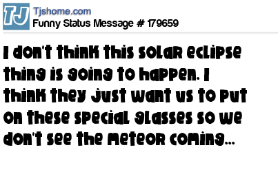 - # 179674 .Don't mean to brag but I saw the Solar Eclipse today. Went outside, closed my eyes & BAM! Solar Eclipse.....