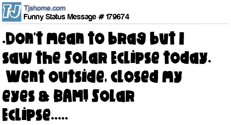 X says .Don't mean to brag but I saw the Solar Eclipse today. Went outside, closed my eyes & BAM! Solar Eclipse.....