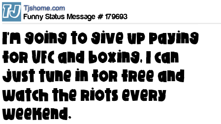 X says I'm going to give up paying for UFC and boxing, I can just tune in for free and watch the riots every weekend.