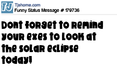 - # 179735 Everybody make sure to remind your ex's that there is a solar eclipse today and you strongly encourage to look at it .