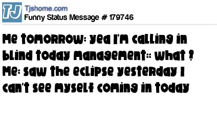 X says Me tomorrow: yea I'm calling in blind today management:: what ? Me: saw the eclipse yesterday I can't see myself coming in today