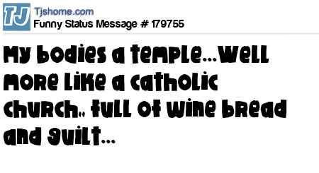 X says my bodies a temple...Well more like a catholic church,, full of wine bread and guilt...