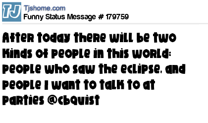 X says After today there will be two kinds of people in this world: people who saw the eclipse, and people I want to talk to at parties @cbquist