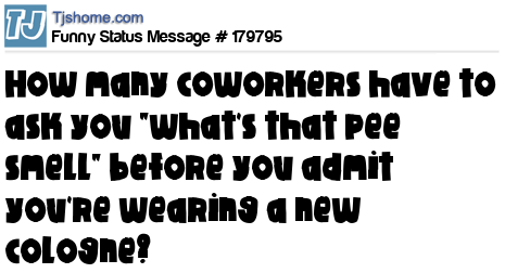 - # 207045 How many coworkers have to ask you "what's that pee smell" before you have to admit you're wearing a new cologne?