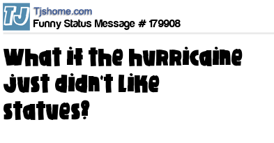 - # 170647 I hope Tropical Storm Hermine gets upgraded. Only because I think 'Hurricaine Hermine' sounds like a 1950's pro wrestler.