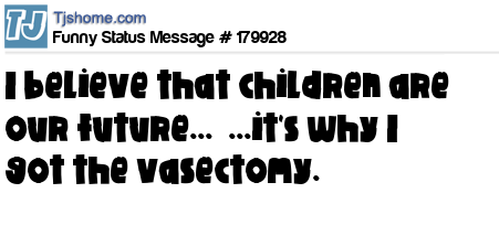 X says I believe that children are our future... ...it's why I got the vasectomy.